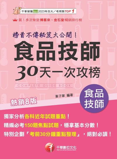 精心挑選六科必考試題,各科目25題,幫助您穩拿基本分數。食品技師50~60分離不開您。